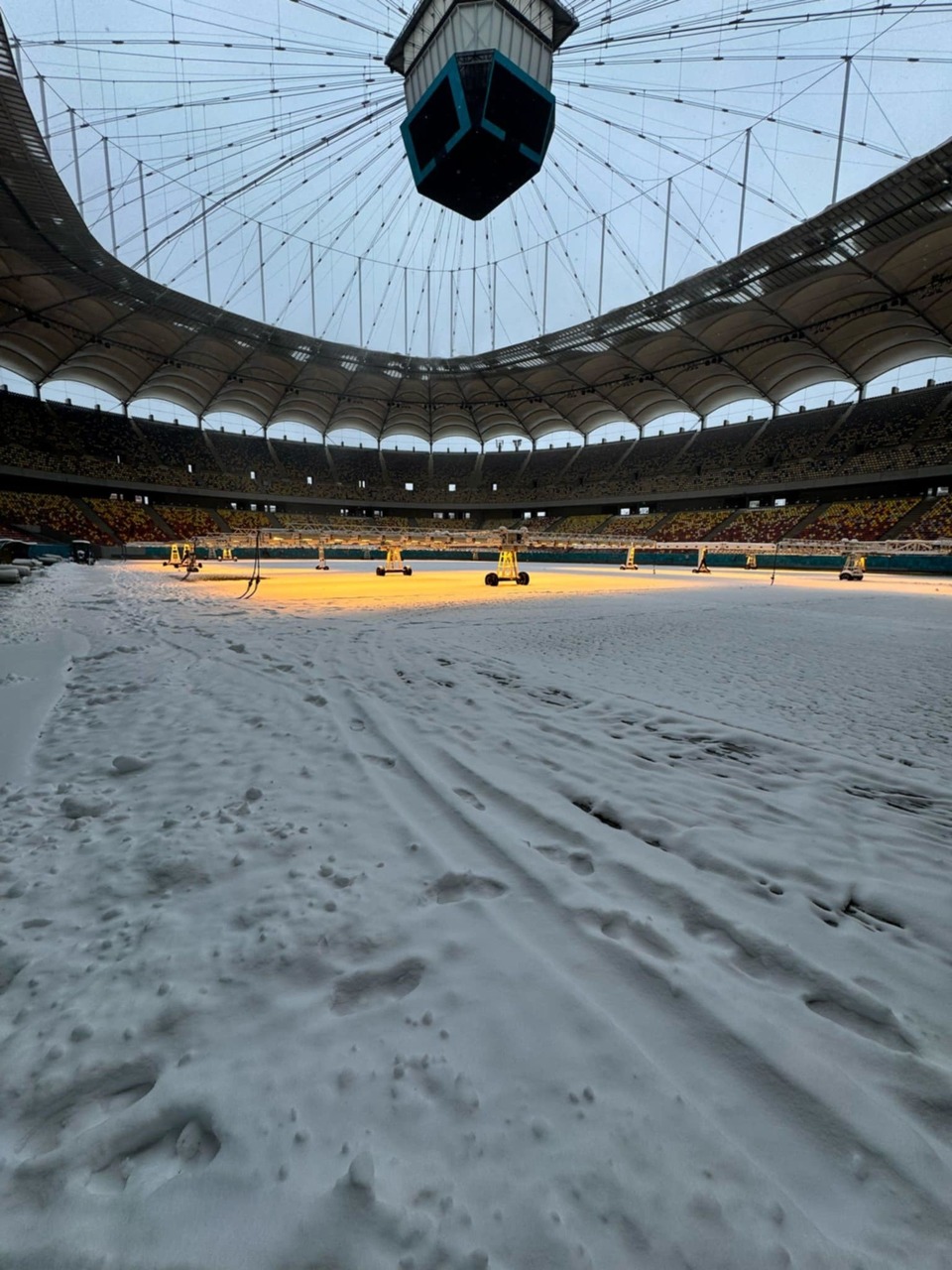 În urma ninsorii abundente din capitală mai multe stadioane au fost afectate, iar „Arena Naţională” este unul dintre ele.