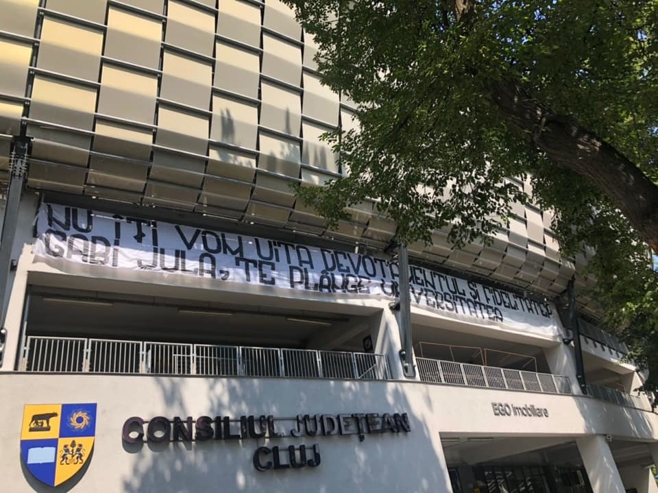”Nu îţi vom uita devotamentul şi fidelitatea. Gabi Jula, te plânge Universitatea!”, este mesajul afişat de fanii ardeleni.